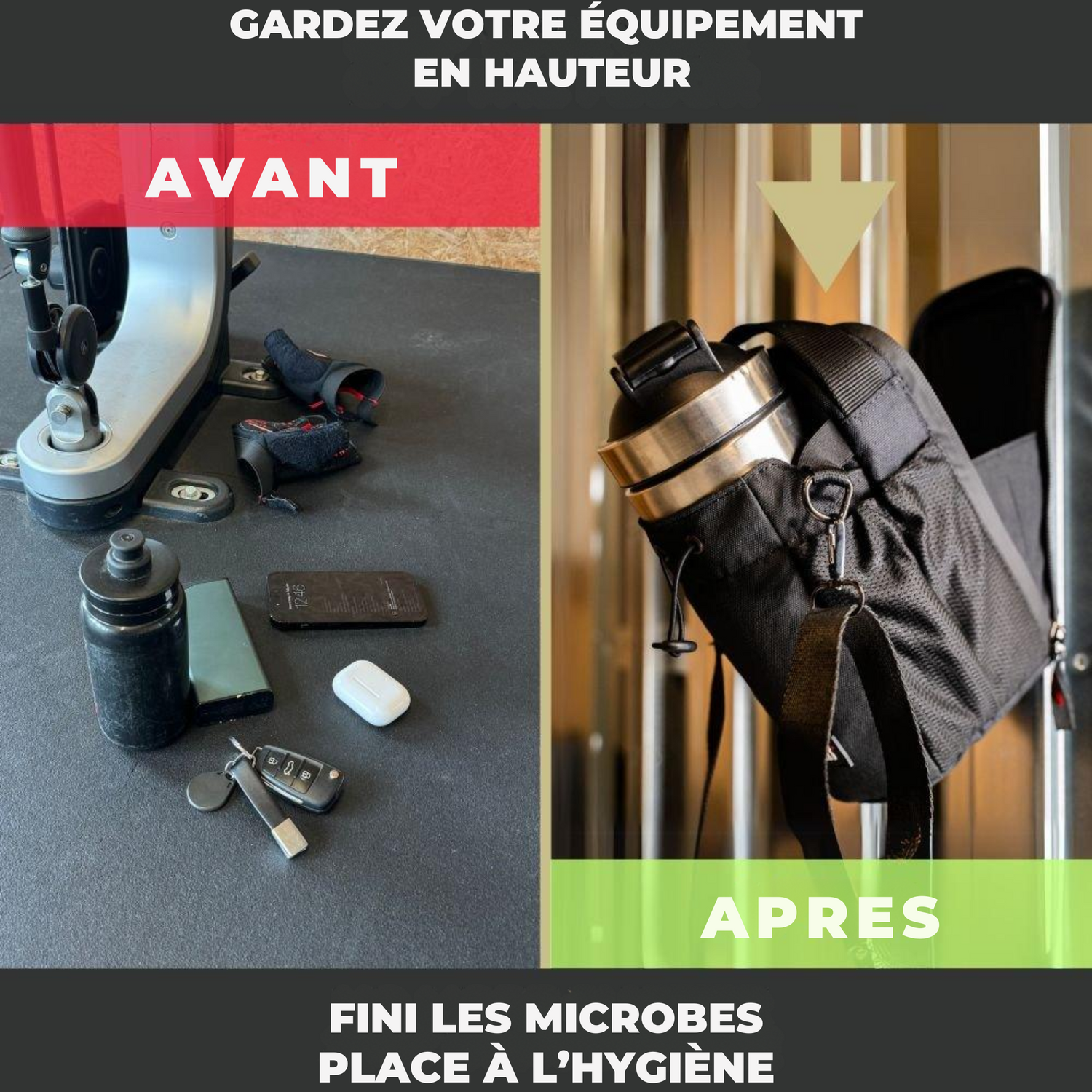 La fixation magnétique sécurisée de MagikBag protège votre bouteille et évite que vos affaires ne traînent au sol. Fini les risques d'écrasement par des haltères ou de casse en marchant dessus , tout reste en sécurité. Un entraînement sans danger ni désordre